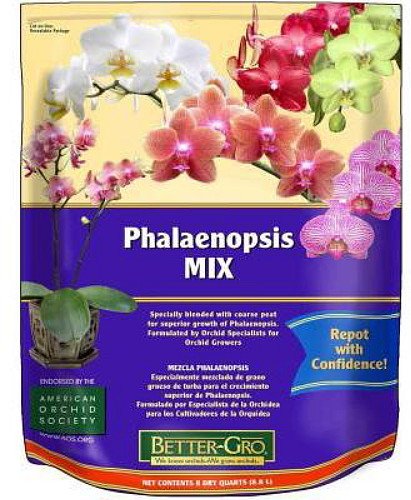Better-Gro Phalaenopsis Mix is a wonderfully rich mixture of Canadian chunk peat blended with western fir bark, hardwood charcoal and coarse perlite.